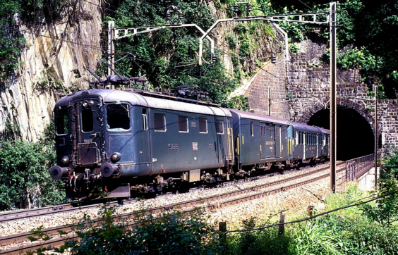 Re 4/4 I - 10011 bei Wassen am 29.06.1988