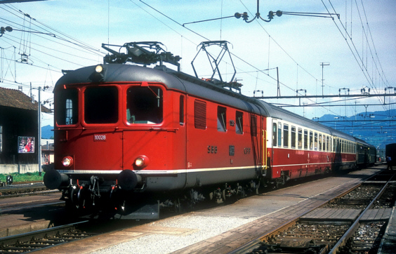 Re 4/4 I - 10028 in St. Margrethen am 01.09.1986