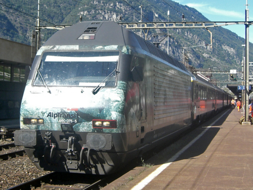 Re 460 075-5 in Biasca am 08.09.2007