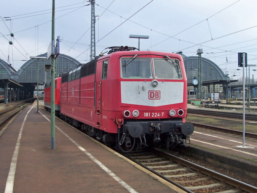 181 224-7 in orientroter Farbgebung mit Latz am 19.03.2005 in Karlsruhe