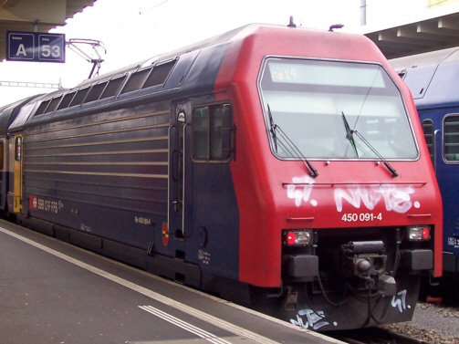 Re 450 091-4 mit versprayter Front in Zürich HB am 30.11.2005