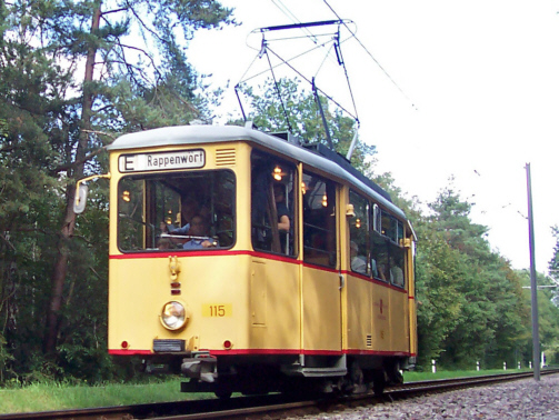 Tw 115 auf der Betriebsstrecke bei der Tullastraße am 03.07.2004