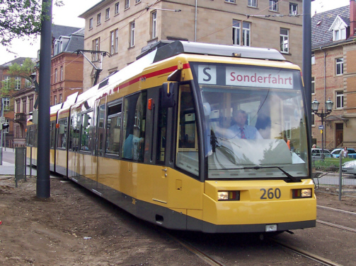 GT 6 70-D/N 260 auf der Neubaustrecke beim Rathaus West / Mühlburger Tor am 17.05.2006